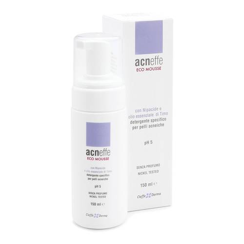 acneffe ECO-MOUSSE Detergente specifico per pelli acneiche. Consigliato per la pulizia della pelle, prima e dopo le applicazioni dei trattamenti topici specifici. Grazie alla sua formula delicata a base di sostanze antimicrobiche ed esfolianti, svolge un'azione contro i fattori che portano alla comparsa dell'acne, mantenendo la pelle sana e idratata.