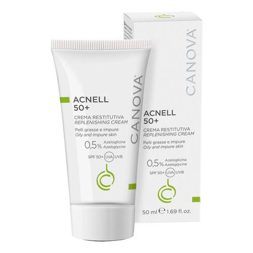 CANOVA ACNELL 50+CREMA GEL Descrizione Crema restitutiva, è un trattamento quotidiano per melli miste, grasse e a tendenza acneica. Grazie a un sistema filtrante garantisce una protezione solare omogenea molto alta verso raggi UVA/UVB. Con 0,5% azeloglicina. Contiene azeloglicina che r... Leggi tutto...