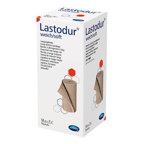 LastodurWEICH/SOFT Per compressione più leggera, con un'elasticità circa del 170%. Bendaggio a lunga estensibilità a elasticità permanente. Adatto a realizzare bendaggi con compressione ben controllabile. Bende rifinite di lunga durata. Devono essere rimosse quando il paziente è in posizione ... Leggi tutto...