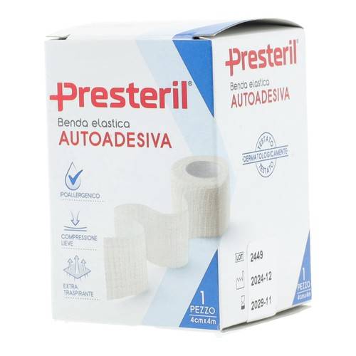 medipresterilBenda AUTOADESIVA Benda autoadesiva per bendaggi autofissanti e protezione di medicazioni. Grazie al potere autoadesivo è particolarmente indicata in caso di traumi leggeri, distorsioni o contusioni delle articolazioni. Modalità d'uso Applicare la fasciatura alla zona inter... Leggi tutto...