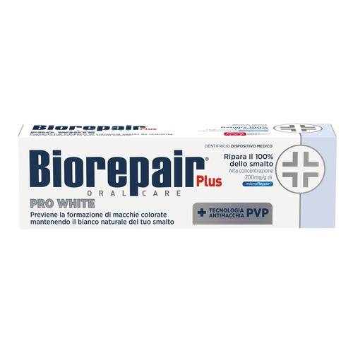 Biorepair Plus PRO WHITE Descrizione Il prodotto, grazie all'azione dei microRepair, ripara e protegge la superficie dello smalto donandole una nuova lucentezza. - È l’unico a base di microRepair fatto della stessa sostanza de... Leggi tutto...