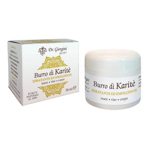 Dr. Giorgini Burro di Karitè Il burro di karitè, ottenuto dalle noci della pianta, possiede benefiche proprietà rigeneranti, elasticizzanti, antiossidanti, emollienti e nutrienti per la cute. Idrata la pelle di mani, viso e corpo aiutando a combattere gli inestetismi cutanei (pelle secca, rug... Leggi tutto...