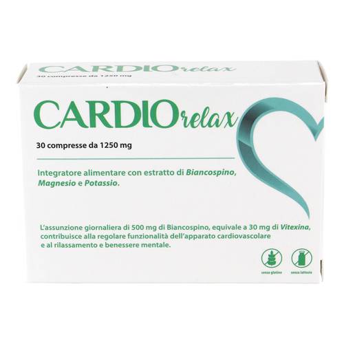 CARDIO relaxDescrizione Integratore alimentare a base di biancospino, potassio e magnesio. Il biancospino coadiuva la regolare funzionalità dell'apparato cardiovascolare e della pressione arteriosa. Il potassio contribuisce al mantenimento di una normale pressione sanguigna. Il magnesio contribu... Leggi tutto...