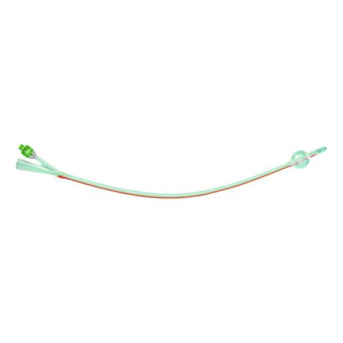 Catetere Foley 2 vie Catetere a permanenza a punta dritta (nelaton} con palloncino (capacità 5-1 O mi} in confezione singola sterile con doppio incarto di sicurezza. Il catetere l00% silicone trasparente é indicato per la cateterizzazione a lungo termine o per pazienti allergici al lattice grazie all'elevato grado di biocompatibilità. La distanza ottimale dei fori nella punta garantisce un eccellente drenaggio. La tecnologia di realizzazione del pallone di gonfiaggio facilita l'inserimento e la rimozione indolore. l fori di drenaggio ad angoli svasati permettono un inserimento ed una rimozione atraumatica e garantiscono il massimo deflusso senza compromettere 11integrità strutturale del catetere. Il disegno del canale di drenaggio riduce il rischio di ostruzione e minimizza il formarsi di incrostazioni.