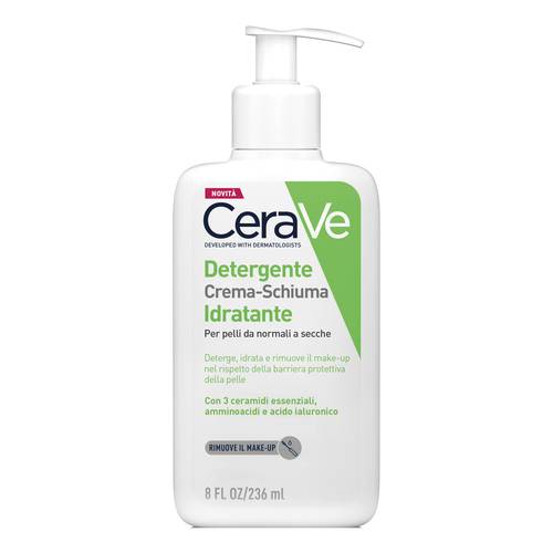 CeraVeDetergente Crema-Schiuma Idratante Descrizione Crema schiumogena detergente idratante per pelli normali e secche. Deterge, idrata e rimuove il make up nel rispetto della barriera protettiva della pelle con 3 ceramidi essenziali, amminoacidi e acido ialuronico. Senza profumo, delicato ... Leggi tutto...
