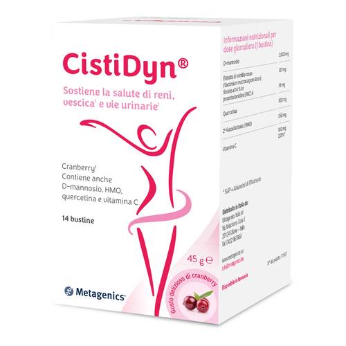 CistiDynDescrizione Integratore alimentare con estratti vegetali, vitamine e altre sostanze. Contiene tè verde e cranberry (estratto di mirtillo rosso) che contribuiscono al drenaggio dei liquidi corporei e alla funzionalità delle vie urinarie. La formulazione di CistiDyn è stata ottimizz... Leggi tutto...