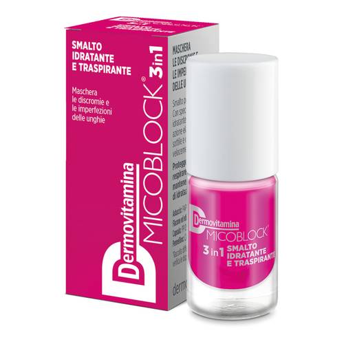 Dermovitamina MICOBLOCK 3 in 1SMALTO IDRATANTE E TRASPIRANTE Descrizione Smalto per unghie. Maschera le discromie e le imperfezioni delle unghie. Con speciale formulazione idratante e traspirante, ad azione elasticizzante. Texture sottile e coprente, asciuga velocemente. Protegge la lamina, la l... Leggi tutto...