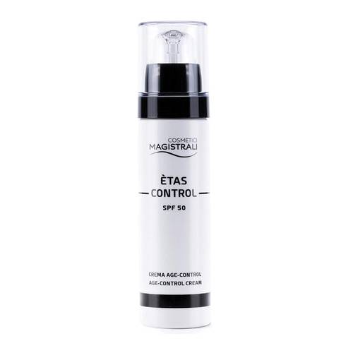 ÈTAS CONTROL SPF 50 Crema fluida protettiva da giorno per la prevenzione e il trattamento dei segni dell’invecchiamento causato dall’esposizione ai raggi solari (fotoinvecchiamento). La tecnologia age-reset RetinSphere, associazione di due derivati della Vitamina A, favorisce un delicato rinnovamento cellulare migliorando le discromie, evitando la formazione di nuove rughe e agendo su quelle esistenti. L’azione è potenziata dall’innovativo sistema depigmentante Spot Correction Complex. Il complesso di filtri solari (SPF 50) protegge dai raggi UVA – UVB – Visibile (HEV) difendendo la pelle dai danni legati all’esposizione solare, prevenendo la formazione di nuove macchie e rughe ed evitando l’aggravarsi di quelle già presenti. Adatta a tutti i tipi di pelle, anche alla pelle sensibile. Può essere utilizzato in gravidanza per l’alta concentrazione di Filtri.