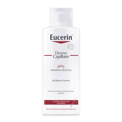 Eucerin Dermo Capillaire pH5 SHAMPOODescrizione Shampoo dalla formula delicata con sorbitolo e un valore ottimale di pH deterge delicatamente mentre previene la forfora causata da irritazioni e secchezza cutanea. Rimuove polline e altri allergeni dai capelli e mantiene un equilibrato pH del cuoi... Leggi tutto...