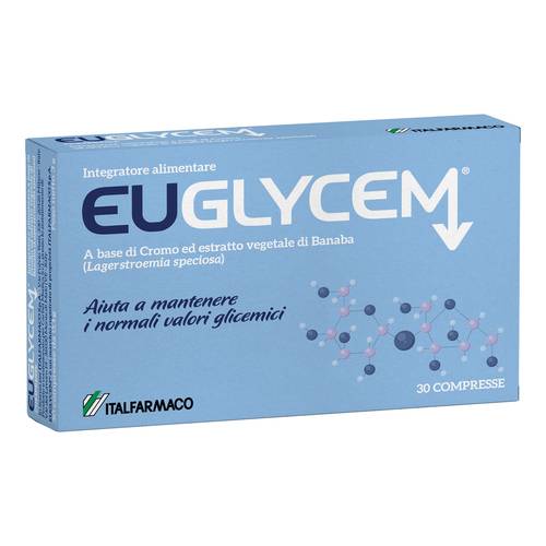 EUGLYCEMDescrizione Integratore alimentare a base di cromo ed estratto vegetale di banaba (Lagerstroemia speciosa). Aiuta a mantenere i normali valori glicemici. Ingredienti Banaba (Lagerstremia speciosa L. Pers.) foglie e.s. tit. 1% acido crosolico, 15% ellagitannini; agenti di carica: c... Leggi tutto...