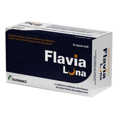 FLAVIA LUNADescrizione Integratore alimentare che combina estratto di soia (titolato al 40% in isoflavoni di soia), estratto di luppolo (titolato allo 0,15% in 8-PreniInaringenina), melatonina, vitamine (acido folico, vitamina D3 vitamine B6 e B12), calcio e acido alfa-linolenico. Senza zuccheri... Leggi tutto...
