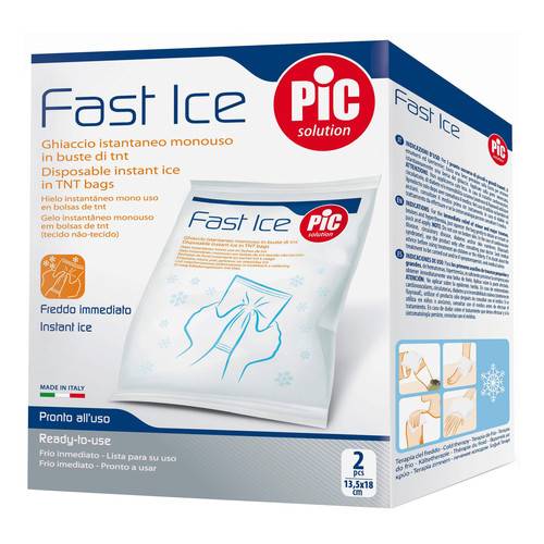 Fast Ice Ghiaccio istantaneo monouso in buste di tnt Per il Pronto Soccorso di piccoli e grandi traumi, basta una lieve pressione sulla busta per ottenere rapidamente una borsa del ghiaccio. Mantiene la temperatura di 0° per 30 minuti. Formato Confezione contenente 2 buste in tnt di ghiac... Leggi tutto...