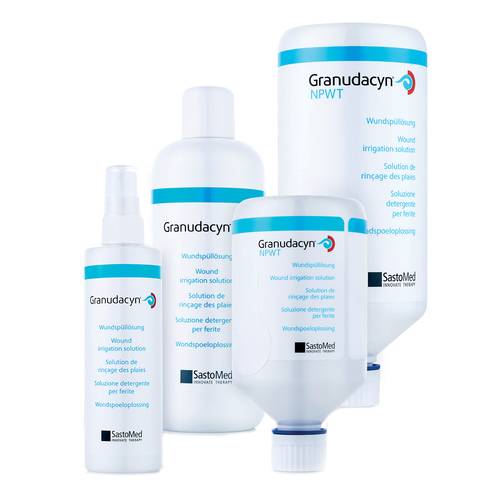 Granudacyn è adatto per l'irrigazione pre-, intra- e post-operatoria dell'area chirurgica. Granudacyn può essere utilizzato per l'irrigazione della cavità peritoneale, dello spazio retroperitoneale e dei legamenti. Non è necessario il risciacquo o la neutralizzazione. Grazie alla sua elevata tollerabilità Granudacyn può essere usato anche in tutte le terapie a pressione negative o positiva, come ad es. V.A.C. Ultra. Può essere utilizzato nelle cavità corporee come la bocca, il naso, la gola, le orecchie e nella cavità peritoneale. La sua applicazione è possibile su ossa esposte, articolazioni, ossa, cartilagine, legamenti e tendini.