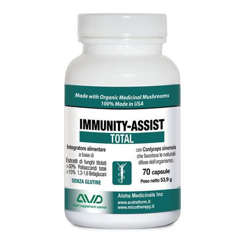IMMUNITY ASSISTTOTAL Descrizione Integratore alimentare di Cordyceps sinensis micelio, betaglucani estratti dai funghi ed estratto di thè verde . Ricco in polisaccaridi immunomodulanti estratti da varie specie di funghi alimentari, Immunity assist total risulta utile per sostenere il sistema ... Leggi tutto...