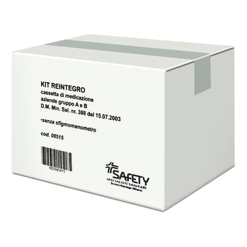KIT REINTEGROper cassetta gruppo A/B senza sfigmomanometro Descrizione Contenuto secondo normativa DM 388 del 15 luglio 2003 e D.leg. 81 del 09 aprile 2008. Senza sfigmomanometro. Cod. 08515 Leggi tutto...