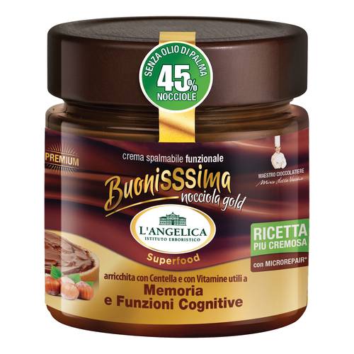 BuonisSsima Crema Spalmabile Memoria e Funzioni Cognitive La crema spalmabile funzionale BuonisSsima de L’Angelica è unnuovo modo di arricchire la propria alimentazione in modo sano e gustoso,trasformando ilsenso di colpa in un vero momento per il tuo benessere. Nasce dall'unione di una su... Leggi tutto...