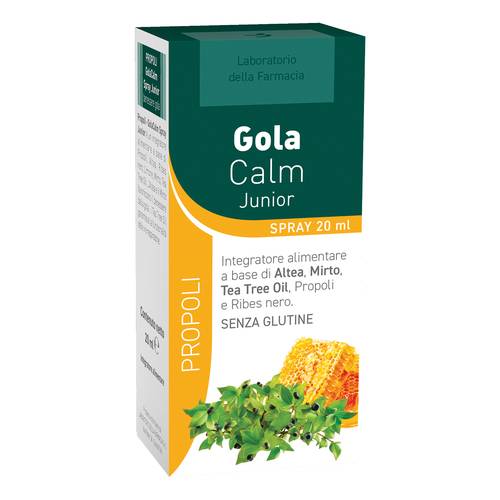 Gola Calm JUNIOR Integratore alimentare a base di Mirto e Altea, utili per il benessere della gola. Senza glutine. Ingredienti Altea macerato idroglicerico 22,69 g; miele acacia 21,17 g; ribes nigrum gemme macerato glicerico 9,07 g; propoli estratto glicerico titolato 1,2 % flavonoidi total... Leggi tutto...