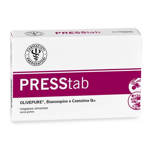 FARMACISTI PREPARATORI PRESStabDescrizione Integratore alimentare con estratto di foglie di olivo per il fisiologico metabolismo dei lipidi. Con biancospino per le normali funzioni dell'apparato cardiovascolare. Entrambi contribuiscono alla regolarità della pressione arteriosa. Con coenzima Q10. ... Leggi tutto...