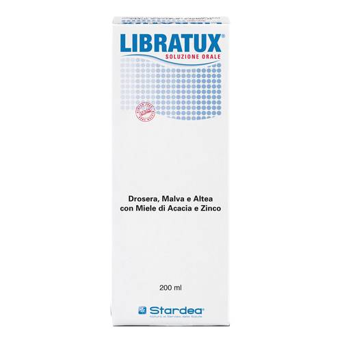 LIBRATUX S O L U Z I O N E O R A L E a base di estratti selezionati di Drosera, Altea e Malva, con Miele e Zinco Gli estratti di Drosera e Malva contribuiscono alla fluidità delle secrezioni bronchiali, grazie alle proprietà emollienti e lenitive, favoriscono la funzionalità della mucosa o... Leggi tutto...