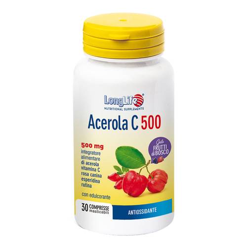 Vitamina C (acido l-ascorbico); stabilizzante: metilcellulosa, sorbitolo; agente di carica: calcio fosfato bibasico; addensante: gomma xanhtano; Rosa canina L. falso frutto estratto 4:1, maltodestrina; antiagglomeranti: acido stearico, magnesio stearato vegetali; calcio citrato; agenti di rivestimento: idrossipropilmetilcellulosa, talco.