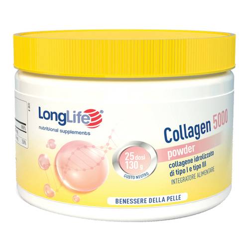 Collagen 5000Descrizione Integratore alimentare a base di peptidi di collagene bovino altamente purificati di tipo I e III, privi di odore e sapore, con vitamina C. La vitamina C contribuisce alla normale formazione di collagene per la funzionalità della pelle. Senza glutine. Caratte... Leggi tutto...