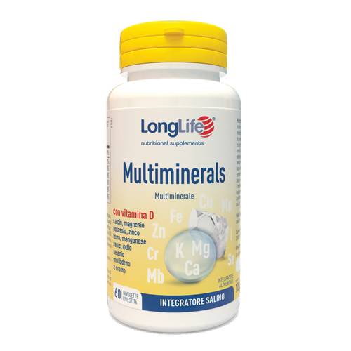 LongLife MultimineralsDescrizione Integratore alimentare con 12 minerali e vitamina D3 nutrienti utili per mantenere il benessere osseo, muscolare, cardiovascolare e nervoso e per migliorare il rendimento energetico. metaboliche ed agiscono in sinergia tra loro. Il calcio contribuisce al ma... Leggi tutto...