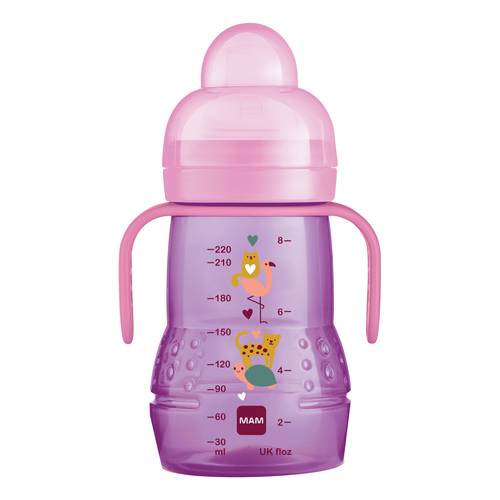 MAM TRAINER FEMMINAcon Tettarella e Extra Soft Spout Descrizione Tettarella anti-goccia e beccuccio extra morbido per un passaggio naturale dall'allattamento al seno o biberon alla tazza. Il tappo, a prova di perdita, per la massima igiene. Funziona come pratico misurino grazie alla scala gra... Leggi tutto...