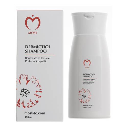 MOST DERMICTIOL SHAMPOODescrizione Shampoo delicato per il lavaggio dei capelli contenente ittiolo solfonato quale agente riducente, antiprurito e rinforzante dei capelli. Contiene inoltre tensioattivi ad alta risciacquabilità e biodegradabilità che consentono un notevole risparmio d'acqua ed il... Leggi tutto...