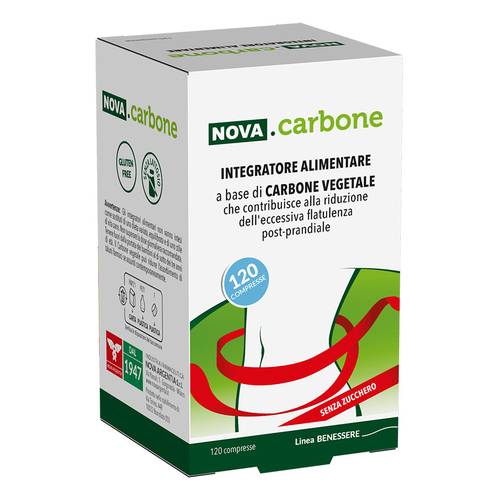 NOVA. carbone CARBONE VEGETALE Integratore alimentare utile per sostenere l’eliminazione dei gas intestinali, la regolarità del transito intestinale e la funzionalità del sistema digerente. Ingredienti per 4 compresse Carbone vegetale polvere (Carbo ligni) 77% 1248 mg Altri ingredienti: sa... Leggi tutto...