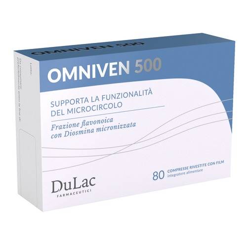 OMNIVEN 500Descrizione Integratore alimentare a base di diosmina micronizzata, esperidina, con estratti di rusco, vite rossa e ippocastano. La vite rossa ha un'azione antiossidante e svolge, insieme al rusco, benefici effetti sulla funzionalità del microcircolo, dando sollievo a gambe pesanti. I... Leggi tutto...