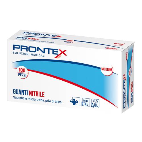 PRONTEX GUANTI NITRILE Guanti in nitrile con elevata resistenza meccanica. Privi di talco di amido vegetale. Formato Misure disponibili: - piccoli - medi - grandi. Cod. 012980 / 012981 / 012982 Leggi tutto...
