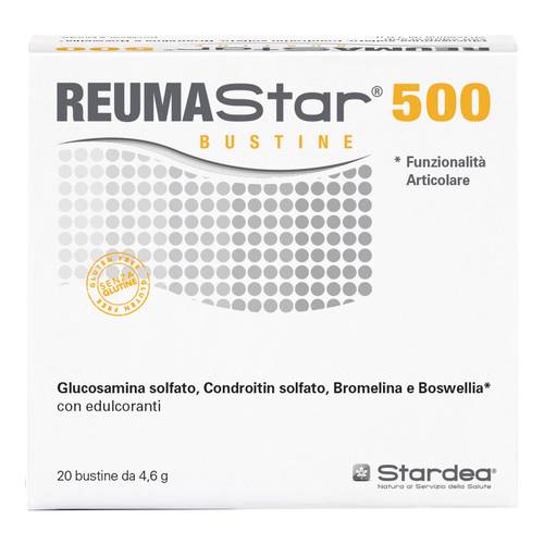 REUMAStar 500Descrizione Integratore alimentare di glucosamina solfato, condroitin solfato, bromelina e Boswellia serrata. La presenza di Boswellia serrata aiuta a mantenere la funzionalità articolare e riduce il contrasto di stati di tensione localizzati. Ingredienti Maltodestrine; corretto... Leggi tutto...