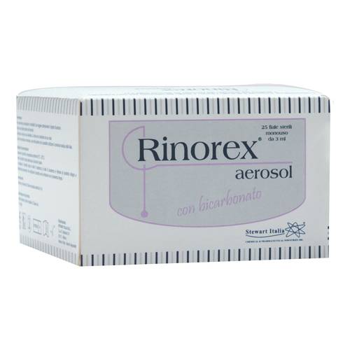 Rinorex aerosol con bicarbonato Soluzione salina ipertonica al 3% di NaCl (sodio cloruro), a pH controllato e tamponata con sodio bicarbonato. È una soluzione sterile pronta all'uso, indicata in aerosolterapia come coadiuvante nel trattamento delle affezioni respiratorie, anche di natura ... Leggi tutto...