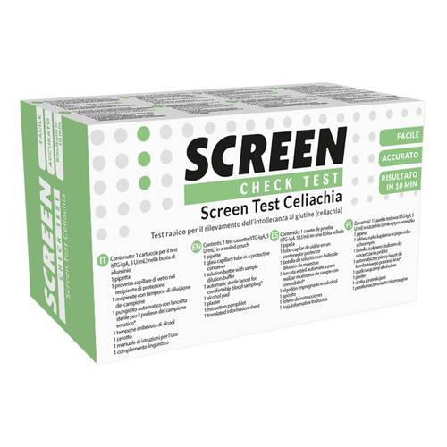 Test rapido immunocromatografico che può essere utilizzato come ausilio nella diagnosi dell'intolleranza al glutine. Rileva gli anticorpi anti-transglutaminasi (tTG) IgA da un campione di sangue intero.