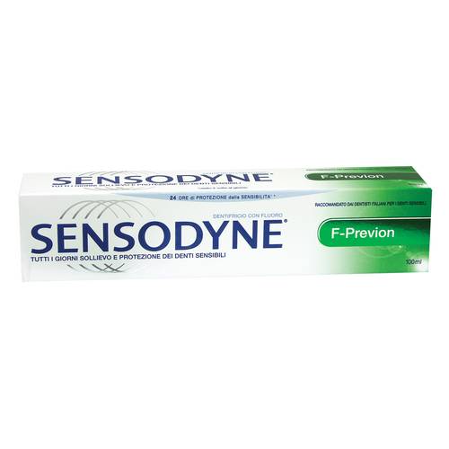 Sensodyne F-Previon Dentifricio che grazie alla sua formulazione specifica allevia il dolore dei denti sensibili e aiuta a proteggere la dentina.