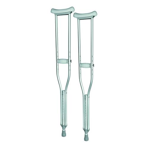 Grucce Ascellari In tubo di acciaio con ammortizzatore a molla. Appoggio ascellare imbottito e impugnatura anatomica. Regolabile in altezza su l0 posizioni da 120 o 145 cm con fissaggio a vite. Puntale antisdrucciolo. Portata l 50 Kg.