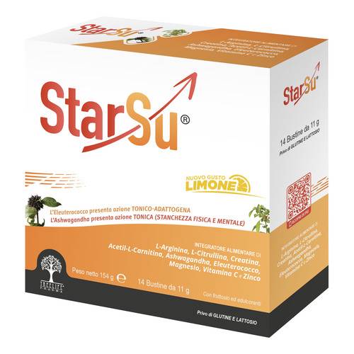 StarSuDescrizione Integratore alimentare a base di ashwagandha ed eleuterococco, con creatina, L-arginina, beta alanina, L-acetil carnitina, magnesio, potassio, zinco e vitamina C. I principi attivi contenuti negli estratti vegetali di ashwagandha ed eleuterococco presentano azione tonica-adatto... Leggi tutto...