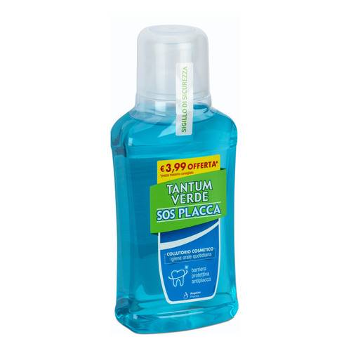 TANTUM VERDE SOS PLACCADescrizione Collutorio cosmetico per l'igiene orale quotidiana, utile per svolgere un'efficace azione antiplacca. Contiene: cetilpiridinio cloruro (aiuta a contrastare la formazione della placca), acido ialuronico (forma una barriera protettiva dall’attacco quotidiano di g... Leggi tutto...