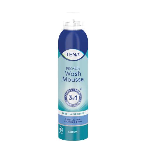 TENA WASH MOUSSE DETERGENTE 400 ML PROskin Wash Mousse Descrizione Mousse detergente 3in1 che deterge, protegge, idrata le pelli mature. TENA Proskin Wash Mousse è una delicata alternativa ad acqua e sapone indicata per la detersione frequente soprattutto in presenza di incontinenza. La fr... Leggi tutto...